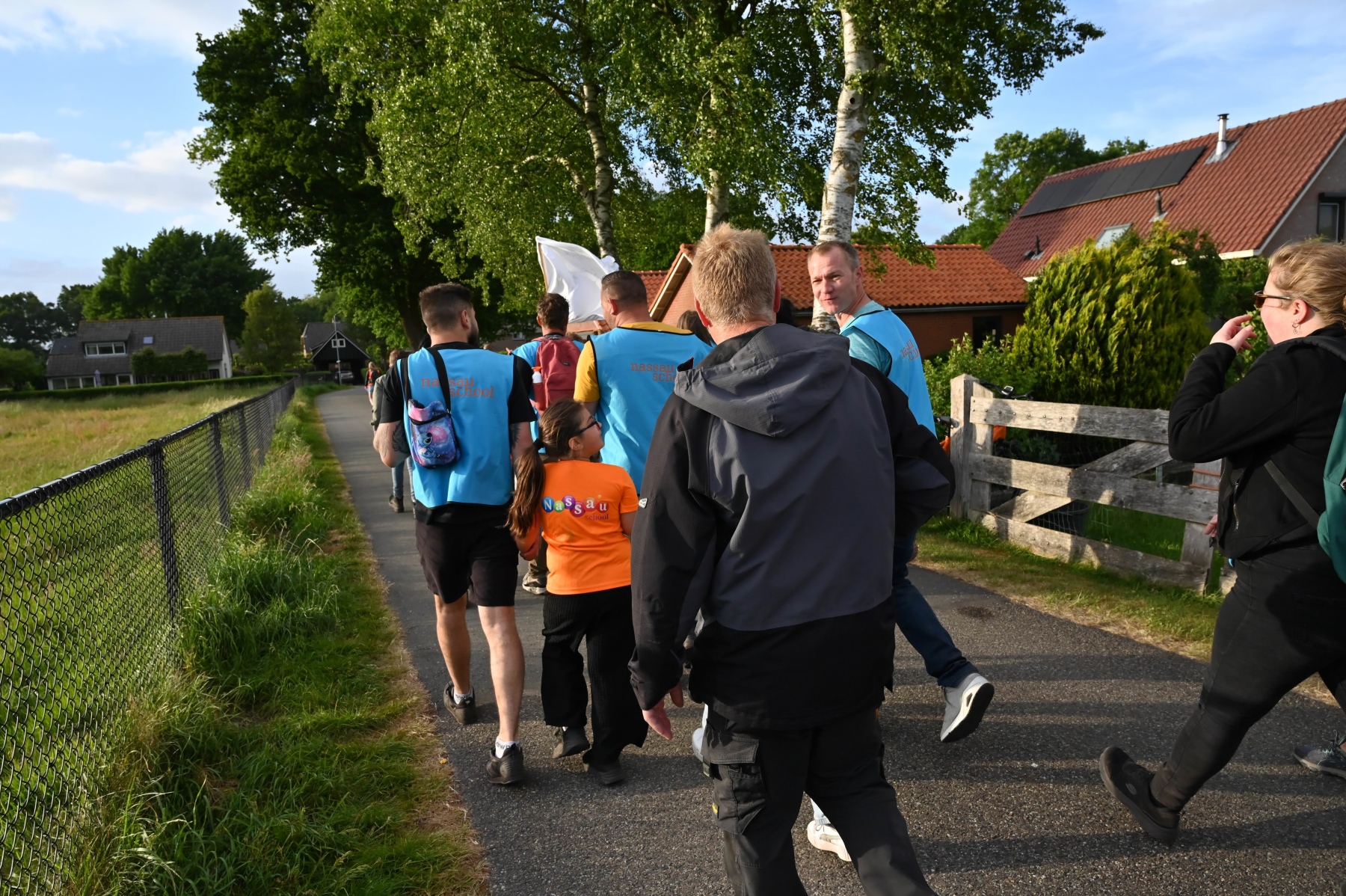 De derde avond van de Avondwandelvierdaagse Wezep zit erop! Hoewel het weer opnieuw zonnig was, voelde het vandaag duidelijk frisser aan dan gisteren – vooral voor de vrijwilligers bij de start, finish en op de kruispunten.
