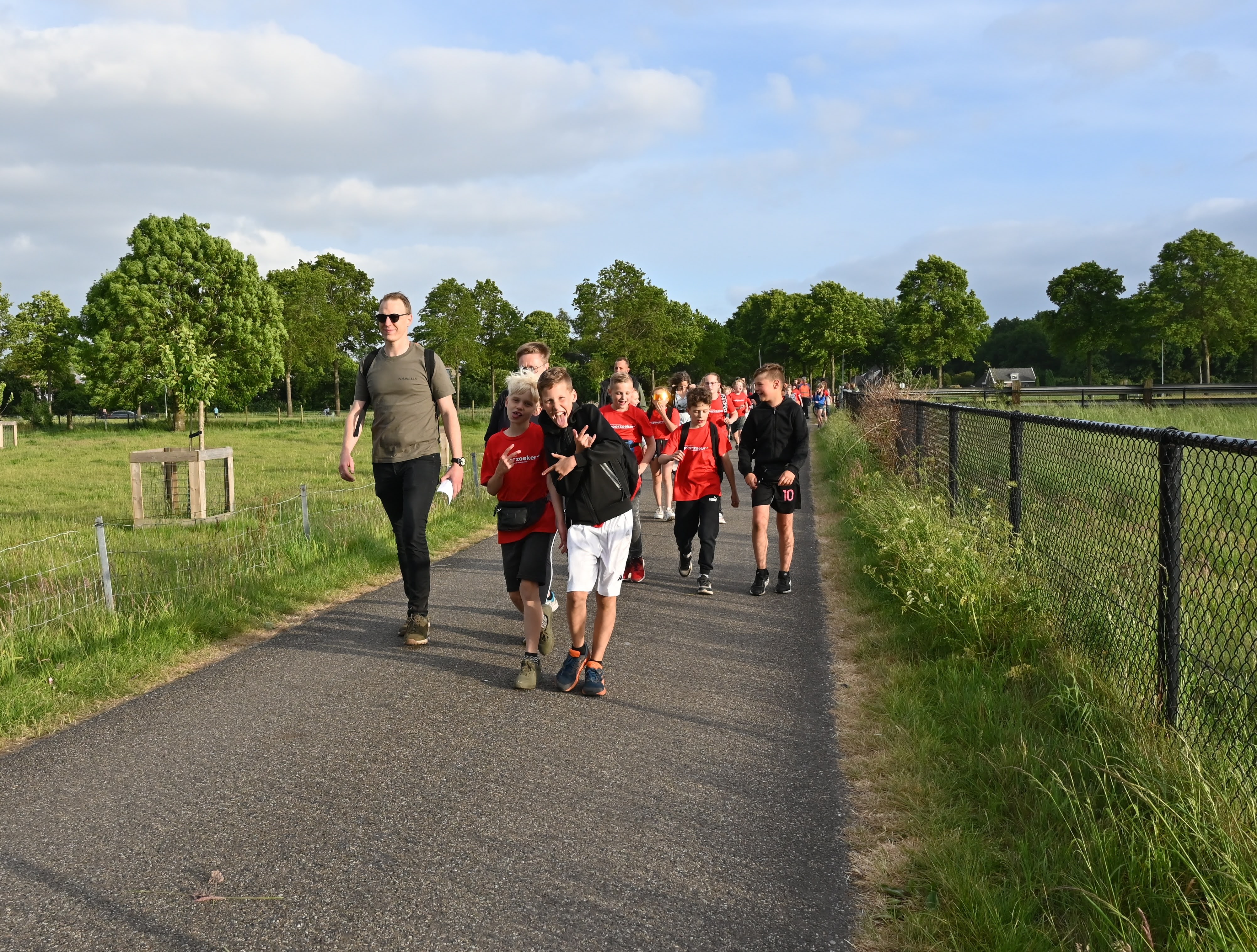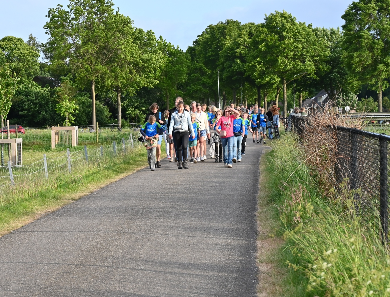 De 10 km-route ging vanavond langs Landgoed De Oldhorst, waar dankzij de droge weken prima te wandelen viel. Ook het wandelpad langs de Engelandsweg, onderdeel van de 5 km-route, was goed begaanbaar. Dat was vorig jaar wel anders – toen leek het op sommige plekken meer op een mudrun dan op een wandeltocht.